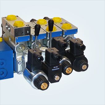 Cụm van phân phối thủy lực kết hợp điện từ và tay gạt là tổ hợp nhiều van được lắp trên cùng một block, cho phép điều khiển và phân phối dòng dầu đến nhiều cơ cấu chấp hành khác nhau. Sản phẩm kết hợp cả điều khiển bằng tín hiệu điện và điều khiển cơ học bằng tay gạt, giúp hệ thống vận hành linh hoạt trong nhiều tình huống làm việc.